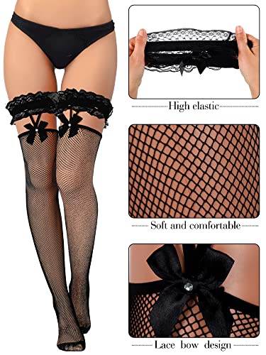 - Fischnetz-Stil: Die halterlosen Strümpfe für Frauen verfügen über ein Netzdesign, verziert mit Spitze, Sockenhalter und Schleife, stilvoll und schön, ziehen die Aufmerksamkeit anderer auf sich und machen Sie charmant und auffällig