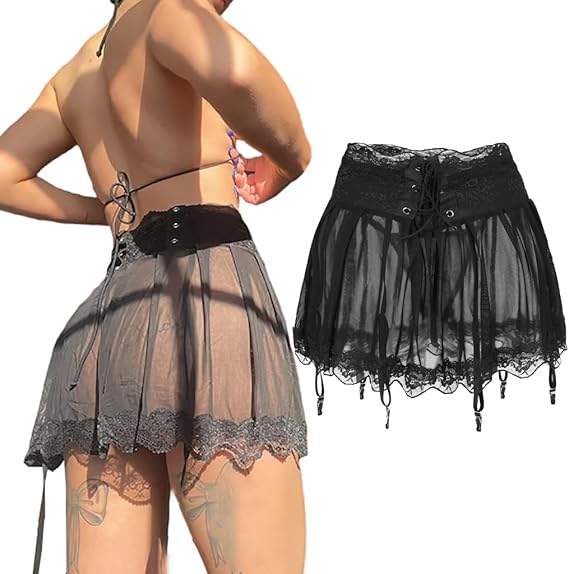 ??Sexy Spitzen Verband Minirock mit Strumpfgürtel Damenrock mit hoher Taille und verstellbaren 4 Hosenträgern für Strümpfe??