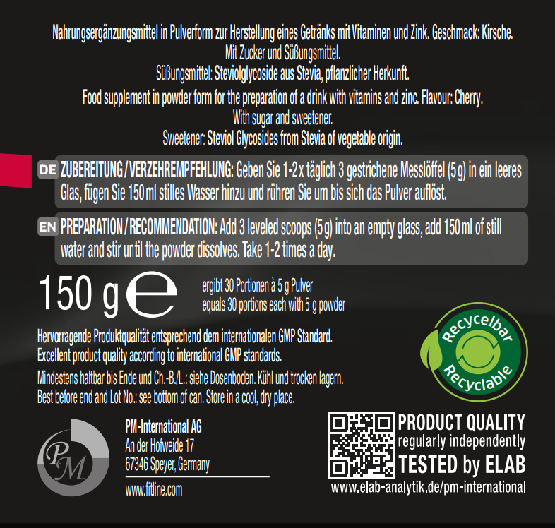 ZUBEREITUNG / VERZEHREMPFEHLUNG: Geben Sie 1-2 x täglich 3 gestrichene Messlöffel (5 g) in ein leeres