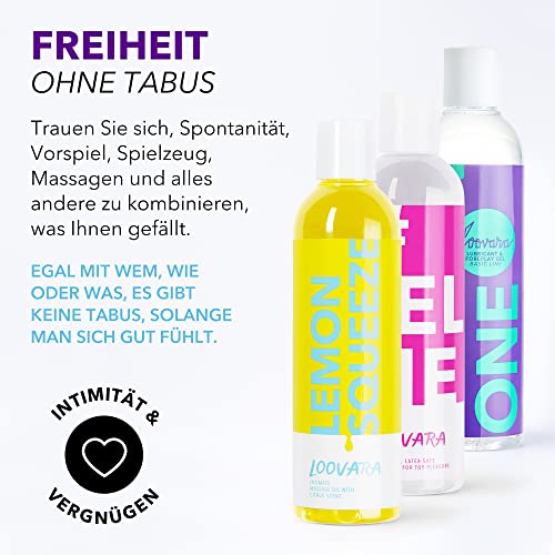 - ❤ PERFEKTE KOMBI IM SET: Anregende Gleitgele auf Wasserbasis, stimulierende Massageöle – das Loovara 3er Bundel macht das Sexleben flexibel. LEMON SQUEEZE Massageöl, SELFIE Gleitgel oder mit TWO IN ONE beides in einem.