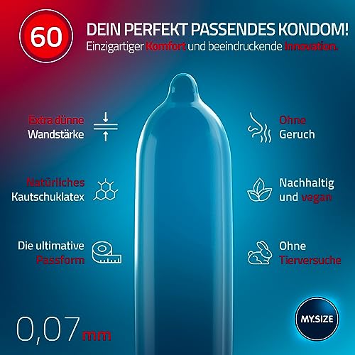 - DER DEAL: MY.SIZE Kondom, Breite 60mm, 36 Stück. Erhältlich in weiteren nominalen Breiten. CE gekennzeichnet. Gemäß EU-Richtlinie für Medizinprodukte 93/42 EWG. Mit Gratis Online Measuring App.