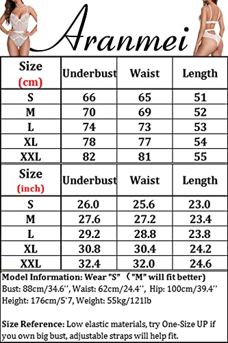 Dieser Aranmei Body für Damen ist ein elegantes und verführerisches Stück Dessous. Hergestellt aus transparenter Spitze und einem sexy V-Ausschnitt, verleiht er Ihnen eine unwiderstehliche Ausstrahlung. Der verstellbare Träger und der flexible Taillenbund sorgen für einen optimalen Sitz und der dehnbare Spitzenstoff bietet ein angenehmes Tragegefühl für Brust und Körper. Beachten Sie bitte, dass dieser Body keinen Bügel-BH enthält. Mit dem praktischen Druckknopfverschluss an der Unterseite lässt sich der Body einfach öffnen