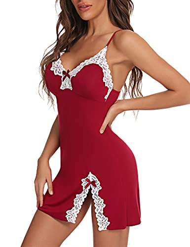 - 【Design】Schickes & Sexy Design: Damen Dessous Modal Spitze Chemise Babydoll verfügt über verstellbare Spaghettiträger, V-Ausschnitt mit floraler Spitze am Ausschnitt, Empire-Taille und Saum. So schick und charmant, um ein Brautnachthemd zu sein.