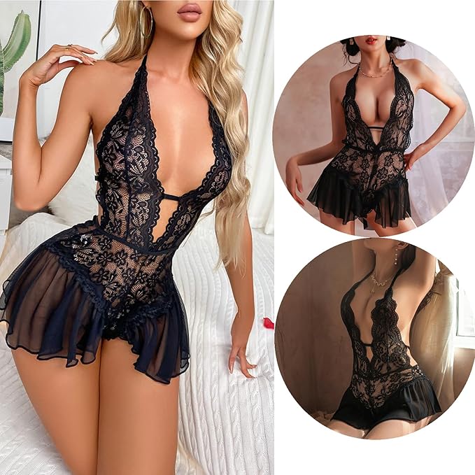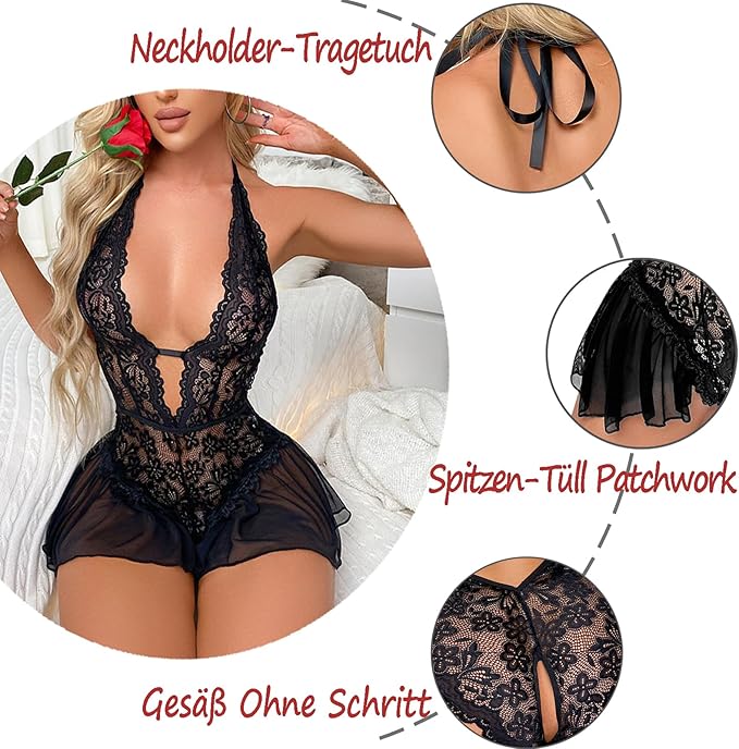 - ?[Einzigartiges Design]: Dieses sexy Dessous-Set umfasst tiefen V-Ausschnitt, Neckholder, rückenfrei, Schrittöffnung und andere Designs. Der sexy tiefe Ausschnitt betont die Brust. Er ist raffinierter und sexy als herkömmliche Damenpyjamas.