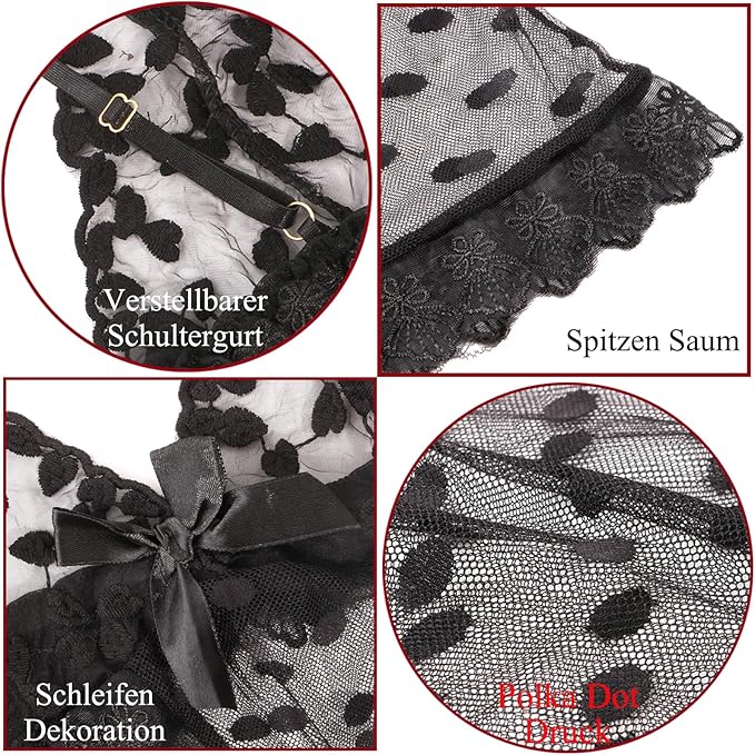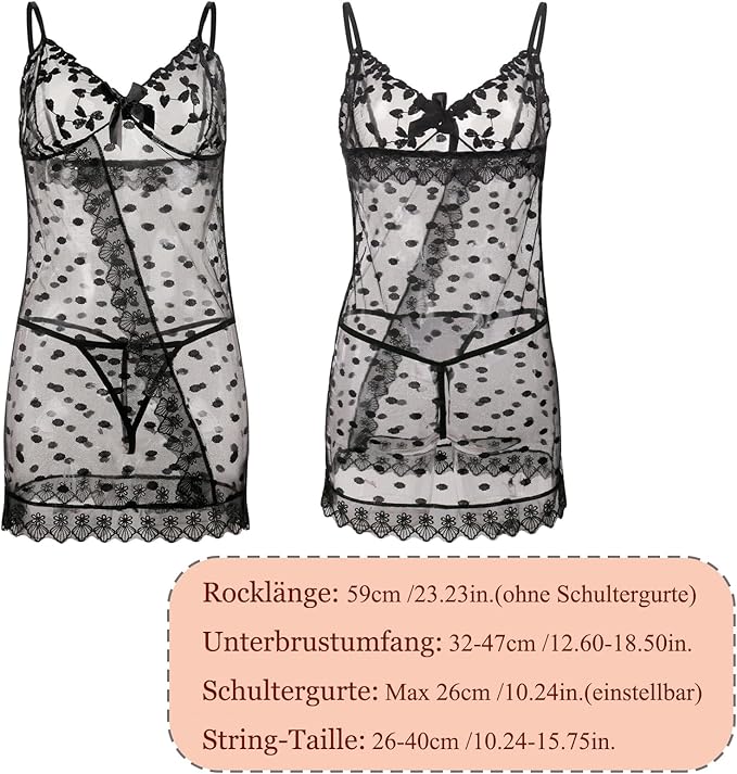- ?[Paketinhalt]: 1 * Transparentes Tüll-Minikleid + 1 * Tanga. Kleidungspflege: Maschinenwaschbar, Handwäsche empfohlen, nicht bleichen, zum Trocknen aufhängen oder im Trockner trocknen. Bitte überprüfen Sie die Größentabelle sorgfältig, bevor Sie den Artikel kaufen.