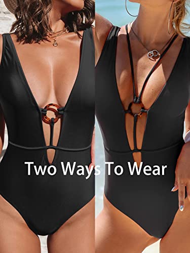 Wenn Sie sich für modische Badeanzüge interessieren, könnte Ihnen der CUPSHE Damen Badeanzug Tiefer V Ausschnitt Lace Up Monokini Trägerdesign O Ringen Einteilige Bademode Swimsuit Schwarz M gefallen. Dieser Badeanzug zeichnet sich durch seinen tiefen Ausschnitt und die Ring-Details in der Front aus. Er hat überkreuzte Träger im Rücken und ist figurbetont geschnitten. Zusätzlich verfügt er über herausnehmbare Softpads und wird mit einem Bindegürtel verschlossen. Hergestellt ist er aus 80% Polyamid und 20% Elasthan