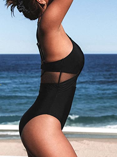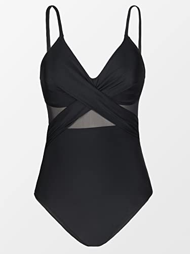 - ÜBER MICH: Modischer Einteiler Badeanzug mit eleganten, gekreuzten Raffungen, V Ausschnitt, Verstellbare Riemen, Transparente Mesh-Einsätze, Figurbetont geschnitten