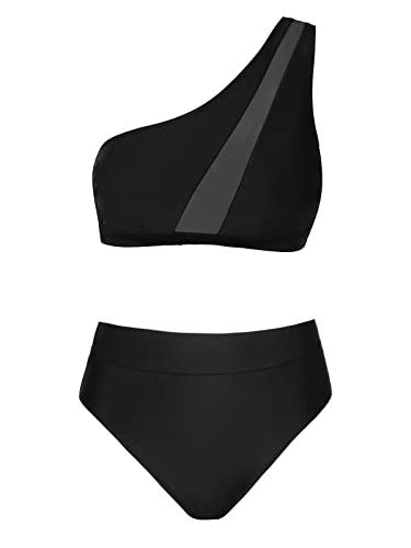 - Dieser zweiteilige Bikini ist ein absoluter Hingucker am Strand oder Pool. Das One-Shoulder-Bikinioberteil mit transparenten Mesh-Einsätzen verleiht dem Bikini eine attraktive Note, während der High Waist Bikinislip eine modische und bequeme Passform bietet
