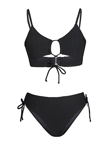 - ÜBER MICH: Zweiteiliger Bikini mit Schnürung vorne und Zierausschnitt, Tiefes Dekolleté, Verstellbare Riemen, Passende Bikinihose, Seitliche Raffung mit Bindeband, Blumenmuster, Figurbetont geschnitten