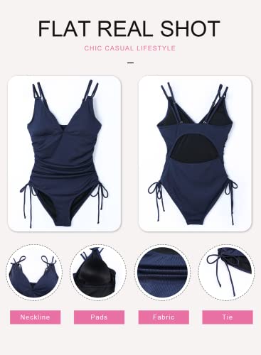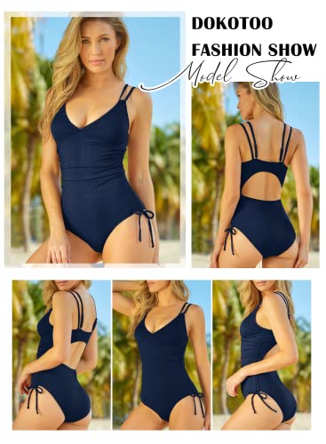 Der Dokotoo Damen Badeanzug in Blau mit V-Ausschnitt und rückenfreiem Design ist nicht nur stylisch, sondern auch äußerst praktisch. Die Raffung am Bauch bietet eine effektive Bauchflachmagie und sorgt für eine schmeichelhafte Silhouette. Hergestellt aus hochwertigem Rippenstoff, ist dieser Schwimmanzug elastisch, weich und schnelltrocknend, was einen optimalen Tragekomfort gewährleistet. Die verstellbaren Spaghettiträger ermöglichen eine individuelle Anpassung und die seitlichen Kordelzüge bieten zusätzliche Variabilität