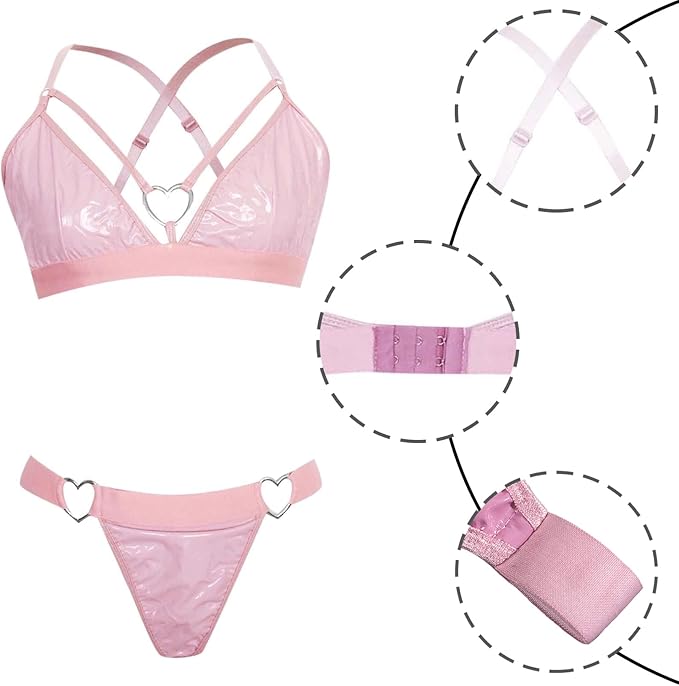 - ?[Anderes Stilerlebnis]: Das sexy Unterwäscheset hat ein sehr klassisches zweiteiliges Design und ist mit hohlen Liebesmetallringen verziert. Zur Auswahl stehen raffinierte schwarze Modelle, verspielte rosa Modelle und leidenschaftliche rote Modelle. Sie erhalten ein anderes Stilerlebnis.