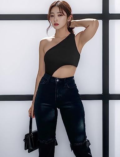 Dieser Aranmei Damen-Body in Schwarz ist ein sexy und trendiges Tank Top Jumpsuit, das perfekt für Clubwear geeignet ist. Der Body hat eine schmeichelhafte eine Schulter und ein Cutout-Design, das ihm einen raffinierten Look verleiht. Er verfügt über doppeltes Futter, sodass er nicht durchsichtig ist, und einen praktischen Schnappschritt, der das An- und Ausziehen erleichtert. Hergestellt aus 95% Polyester und 5% Elasthan, ist dieser Body sehr weich, hoch dehnbar und hautfreundlich. Er fühlt sich angenehm auf der Haut an