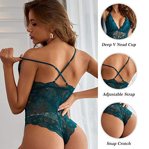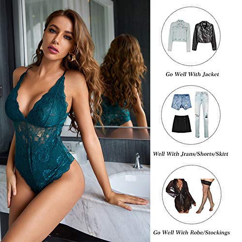 - Design:Frauen Tiefer V-Ausschnitt Dessous Durchsichtig Bodysuit mit Stretch Spaghetti-Träger und Spitze weiche Cups, schöne Blumen auf dem Oberteil und wunderschöne gewellte Borte, macht Sie eleganter, charmanter, fash und schick.