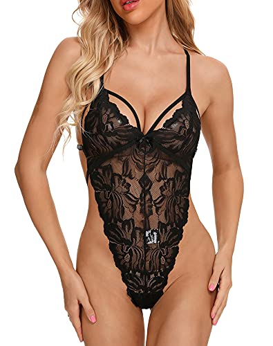 Aranmei Frauen Teddy Dessous Einteiliges Babydoll Aushöhlen Tiefem V-Ausschnitt Spitze Outfits