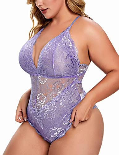 Dessous in Übergröße für Frauen, Plus-Spitzen-Body, sexy Teddy-Dessous mit Sna-p-Schritt.