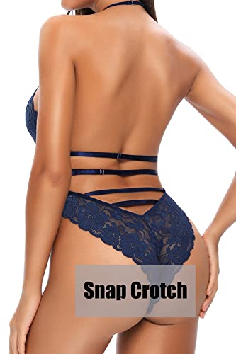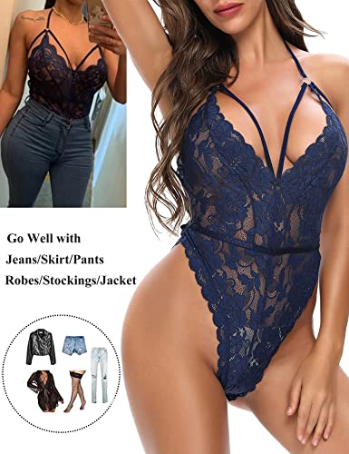 Aranmei Sexy Dessous für Damen, V-Ausschnitt, florales Spitzen-Body, Einteiler, Strappy Dessous, Boudoir-Outfits