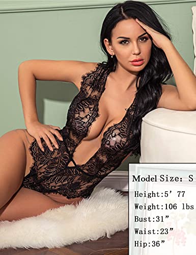 - Spitzen-Body für Frauen mit tiefem V-Ausschnitt, Stretch-Blumen-Spitzenstoff, verstellbare überkreuzte Träger, einfach anzuziehen und fühlt sich an, als würden Sie nichts tragen, machen Sie extrem bequem. Diese Teddy-Dessous hat die perfekte Größe, um Ihre besten Kurven zu betonen, macht Sie charmanter.