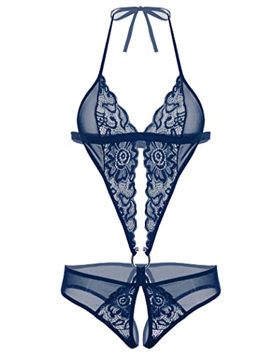 Dieses Avidlove Damen Tiefer V-Ausschnitt Halter Lingerie Bodysuit in Navyblau ist nicht nur ein sexy Dessous-Set, sondern auch ein hochwertiges und komfortables Stück. Mit seinem tiefen V-Ausschnitt betont es die Brustkurve und verleiht Ihnen eine elegante, charmante und sexy Ausstrahlung. Der Neckholder-Stil lässt den Rücken frei und sorgt für zusätzliche Attraktivität. Hergestellt aus einer Kombination aus Spitze und Tüll, ist dieses Dessous weich, elastisch und hautfreundlich, sodass Sie sich den ganzen Tag über wohl und glamourös fühlen