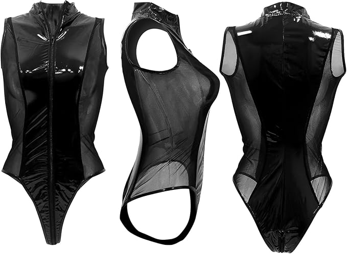 Weiterführende Links zu "NewBull Sexy Bodysuit für Damen Nähen Mesh-Lackleder Wetlook Dessous Frauen Transparent Tüll Klassis"