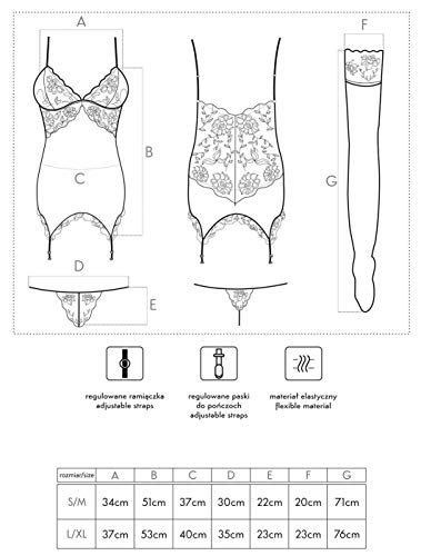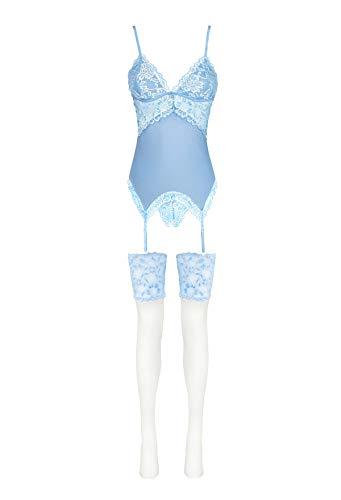 - Verführerische Strapscorsage gefertigt aus einem Mix aus zarter Spitze und blickdichtem Stretchmaterial. Mit verstellbaren Trägern. Die Corsage setzt die Kurven gekonnt in Szene. Die 4 festgenähten Strapshalter sind verstellbar. Dazu ein passender String. Die Strümpfe sind im Set mit enthalten. Größe: S/M, L/XL. Farbe: blau. Material: 88%Polyester, 12%Elasthan.