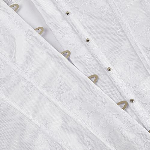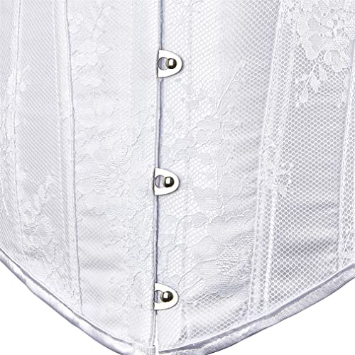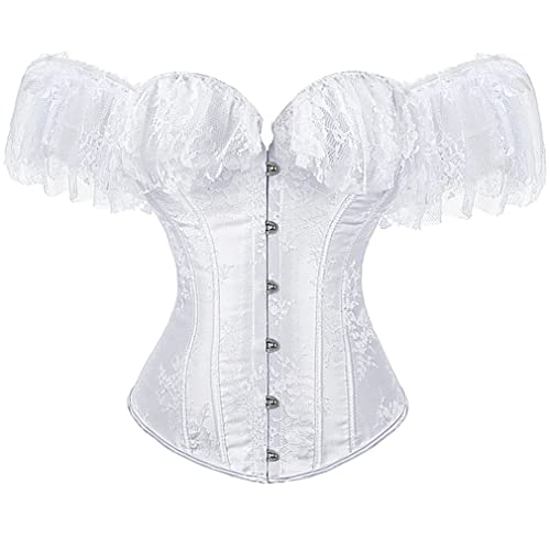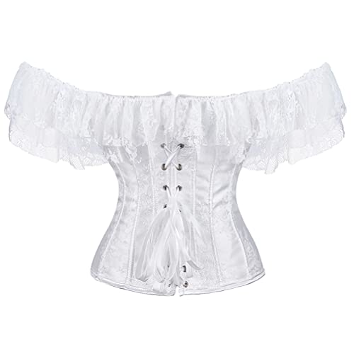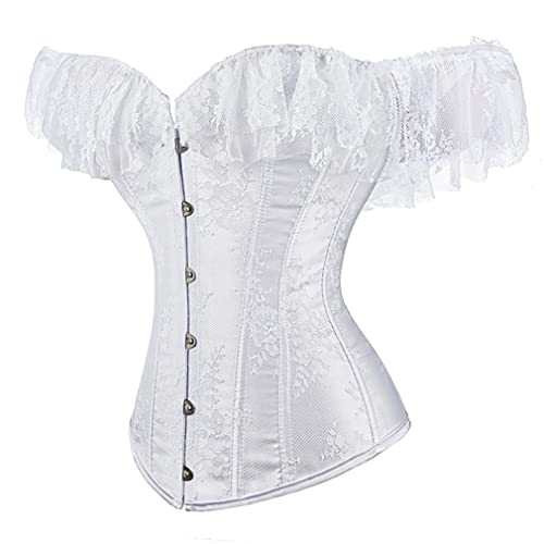 Dieses Grebrafan Damen Corsage mit Ärmel Taillen Korsett Top Gothic ist ein absolutes Must-Have für alle Liebhaberinnen von Gothic-Mode. Mit seinem einzigartigen Design und der eleganten Kombination aus Brokat und Spitze ist es ein wunderschönes Kleidungsstück, das die weibliche Figur perfekt betont. Das Corsagentop verfügt über eine stahl-Vorderschließe und eine starke Korsettschnürung auf der Rückseite, die eine individuelle Anpassung ermöglicht. Durch den Tunnelzug lässt sich die Corsage bequem verschließen. Sie besteht aus 90% Polyester