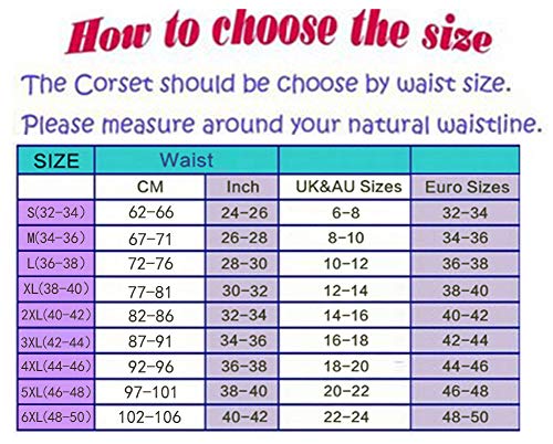 Bitte beachten Sie UNSERE Größentabelle auf den linken Bildern und verwenden Sie nicht die Amazon Größentabelle. und Korsett sind nach dem Taillenumfang entworfen. Messen Sie sich, wenn Sie sich über die Größe Sorgen machen, weil unsere Größentabelle anders sein kann als die, die Sie normalerweise verwenden