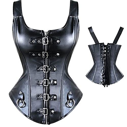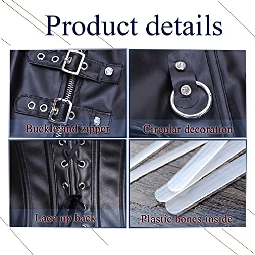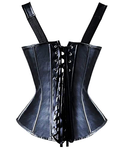 Dieses Damen Vollbrust Lackleder Korsett Corsagentop Bustier Korsage Shirt in Schwarz ist ein aufwendig verarbeitetes Kleidungsstück, das mit viel Liebe zum Detail gestaltet wurde. Es ist perfekt für besondere Anlässe wie Partys, Hochzeiten, Shows oder Clubwear geeignet. Die Corsage wird mit einem sexy String geliefert, der das Outfit komplettiert. Das ärmellose Design und der Tunnelzug-Verschluss sorgen für eine bequeme Passform und ermöglichen es Ihnen, das Korsett individuell anzupassen. Hergestellt aus 90% Polyester und 10% Elasthan
