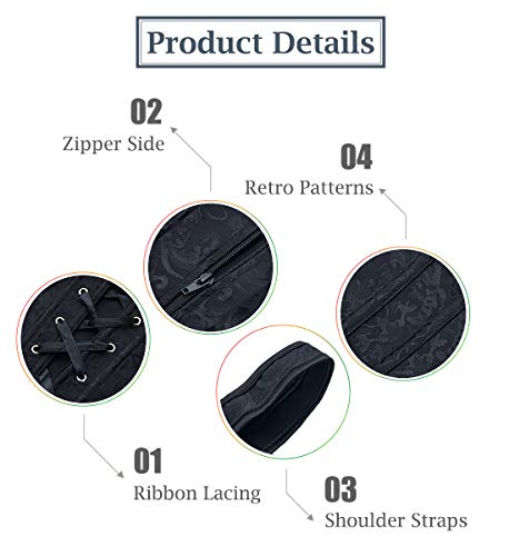 - ★ Dieses hochwertige Korsett wird speziell für die Körperformung von Frauen entwickelt; Mit metallener Verschlüssen an Vorderseite ist die Korsage leicht zu öffnen oder zu verschließen und mit Schnürung am Rückseit einfach zu einstellen; Am innenseiten gibt es 12 Kunststoff Stäbe, womit die Corsage die Unterstützung am Taille bieten und Ihre Körper nachhaltig formen kann.