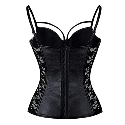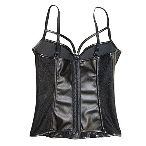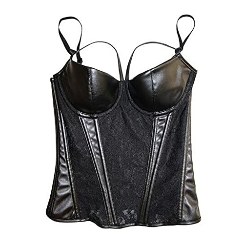 Dieses Damen Burlesque Vollbrust Faux Leder Korsett Corsage Top Bustier in Schwarz (Größe L) ist ein stilvolles und verführerisches Kleidungsstück, das importiert wurde. Es verfügt über ein Schnürkorsett mit Brustumfang und einem passenden G-String, um Ihren Look zu vervollständigen. Das Korsett ist mit spiralförmigen Stahlknochen ausgestattet, die nicht nur die Taille unterstützen, sondern auch eine optimale Körperhaltung fördern. Diese Knochen sind flexibel und langlebig, dennoch so weich wie Plastik und können leicht gebogen werden