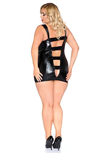 Schwarzes Wetlook Chemise mit tiefem Rückenschlitz Damen Negligee XXL Plus Size