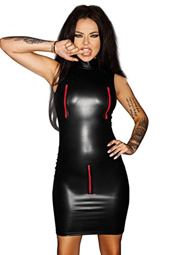 Rassig und scharf!! Dieses extravagante schwarze Minikleid der exklusiven Marke Noir HANDMADE ist in absoluter Top Qualität handgefertigt und ein heißer Kurvenbetoner. Die vier roten Reißverschlüsse ermöglichen einen schnellen Zugriff und machen dieses hautenge hochgeschlossene Kleid absolut einzigartig. Noir Handmade bietet höchste Qualität und feinste Verarbeitung die Sie begeistern wird. Farbe: Schwarz-Rot. Material laut Herstellerangabe: 80% Polyester, 20% Elasthan.