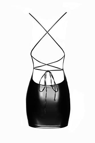 - Erotisches knappes Damen Dessous wetlook Minikleid rückenfrei in schwarz.