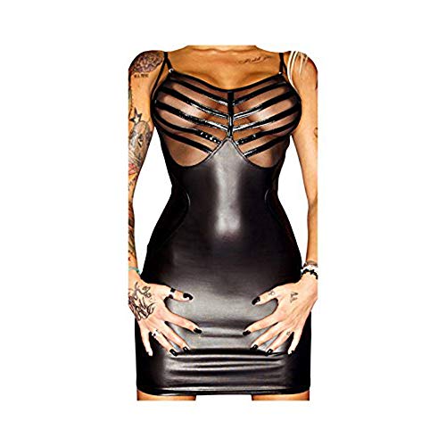 Atemberaubendes Kleid, mit Reißverschluss auf der Rückseite. Gefertigt aus dehnbarem, mattem Wetlook-Material. Im Brustbereich wurde Tüll und Lack verwendet. Dieses Kunstlederkleid ist aufgrund seines 4-Wege-Stretch-Stoffs extrem elastisch und dadurch sehr angenehm zu tragen.