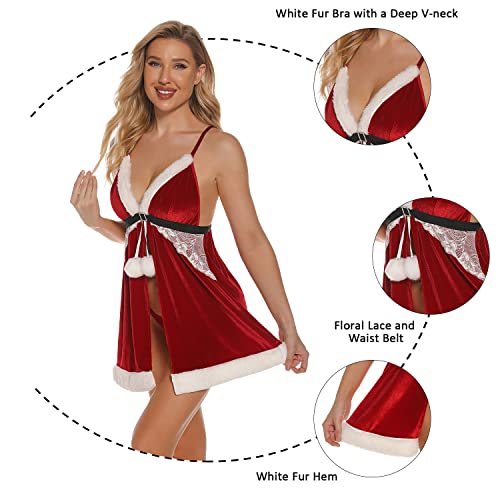 Aranmei Weihnachten Dessous für Frauen Sexy Santa Dessous Set Spitze Babydoll Chemise Nachtwäsche