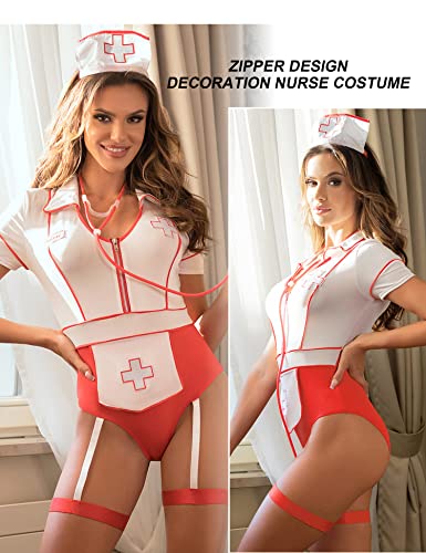 Produktinformationen "comeondear Krankenschwester Dessous Kostüm Damen Body Kurz Bodysuit V-Ausschnitt Clubwear Reißversch"