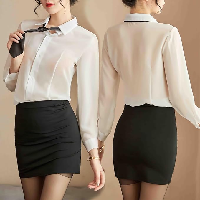 - ?[Sicherer und Bequemer Stoff]: Diese sexy Bürosekretärin-Uniform besteht aus hochwertigem Polyester und Elasthan. Das weiße Hemd ist leicht und atmungsaktiv, bequem und hautfreundlich; der Minirock fühlt sich dehnbar und seidig an. Bieten Sie ein hervorragendes Trageerlebnis.