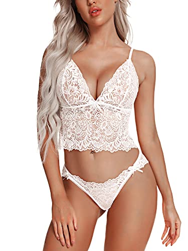 Aranmei Damen Dessous Set 2 Stück Sexy Unterwäsche Set Longline BH und Höschen Set Blumenspitze Dessous Set