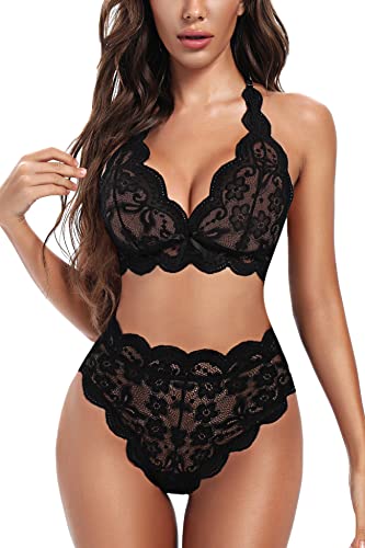- Design: Dieses zweiteilige Dessous-Set verfügt über einen überbackenen Blumenspitzen-BH mit hoch tailliertem Spitzenhöschen, exquisites Verarbeitungsdesign. Tragen Sie dieses Dessous-Set, um Ihren Körper attraktiver und sexy zu machen.