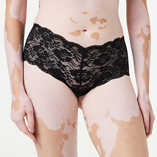 Die Iris & Lilly Damen Spitzen-Hipster sind die perfekte Ergänzung für Ihre Unterwäschesammlung. Hergestellt aus hauchdünner elastischer Spitze, schmiegen sie sich sanft an Ihre Haut an und sorgen für ein angenehmes Tragegefühl. Mit ihrer moderaten Bedeckung und dem niedrigen Schnitt sind sie ideal, um unter Hosen mit mittlerer Bundhöhe unsichtbar zu bleiben. Die Hipster bestehen zu 91% aus Polyamid und zu 9% aus Elasthan, was für eine optimale Passform und Haltbarkeit sorgt.