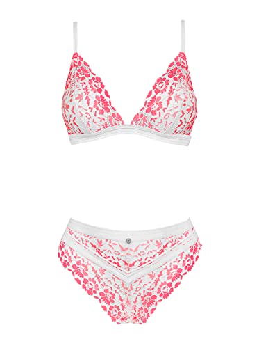 - Details: rosa Set, klassischer Schnitt. BH mit Triangel-Cups und ohne Versteifung; verstellbare Träger und Schließe am Rücken. Slip mit erhöhter Taille. Leicht transparenter Stoff. Erhältlich in den Größen S/M und L/XL