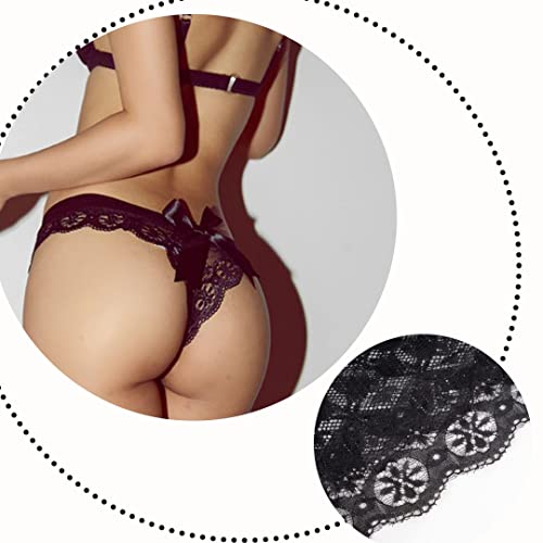 - ?Dieses Eleganter Damen String ist aus floraler Spitze für eine sehr weiche Passform gefertigt. V-förmiges Gummiband mit niedriger Taille, voller Schönheit und Geheimnis. Eine kleine Schleifenverzierung auf der Rückseite macht Sie charmanter.
