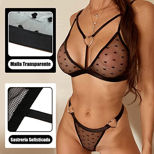 Dieses ROSVAJFY Sexy Damen Transparentes Dessous-Set ist nicht nur angenehm zu tragen, sondern auch äußerst sexy. Das atmungsaktive Mesh-Material sorgt für ein angenehmes Tragegefühl, während die Dreieckskörbchen und der G-String das Set zu einem echten Blickfang machen. Mit seinem tiefen V-Ausschnitt, den verstellbaren Schultergurten und den süßen Details wie dem Herzring auf der Brust ist dieses Dessous-Set sowohl verführerisch als auch süß. Es eignet sich perfekt für besondere Anlässe wie Weihnachten, Halloween oder Party. Das