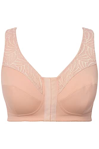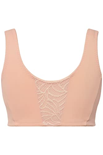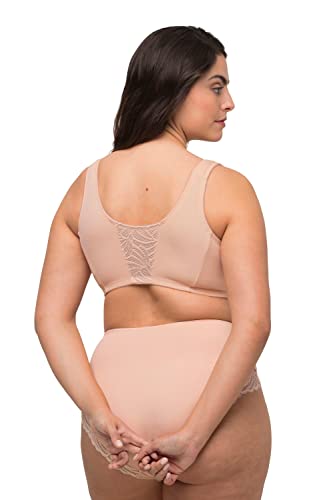 Der Ulla Popken Damen Entlastungs-BH in Champagner mit der Größe 120D ist ein vielseitiger und bequemer BH, der eine bewährte Passform bietet. Dieser BH ist ohne Bügel gestaltet, um ein angenehmes Tragegefühl zu gewährleisten. Der Vorderverschluss ermöglicht ein einfaches An- und Ausziehen, während die breiten Spitzen-Träger zusätzlichen Halt und Komfort bieten. Hergestellt aus 82% Polyamid und 18% Elasthan, bietet dieser BH sowohl Flexibilität als auch Strapazierfähigkeit.