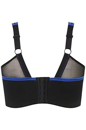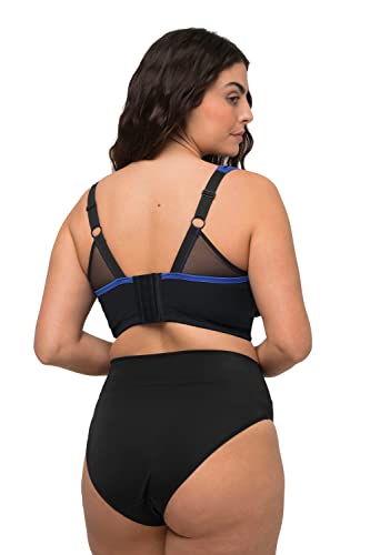 Der Ulla Popken Damen Sport-BH in Schwarz ist ein Must-have für alle sportbegeisterten Frauen. Dieser BH bietet nicht nur eine optimale Unterstützung, sondern auch einen hohen Tragekomfort. Das leichte und atmungsaktive Mesh-Material sorgt dafür, dass die Haut während des Trainings angenehm kühl und trocken bleibt. Die formenden Stütznähte geben dem Busen eine schöne Form und sorgen für eine perfekte Passform. Der Pull-on-Verschluss ermöglicht ein einfaches An- und Ausziehen, ohne dass ein Bügel stört. Das elastische Unterbrustband bietet zusätzlichen Halt und sorgt dafür, dass der BH angenehm sitzt