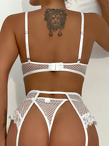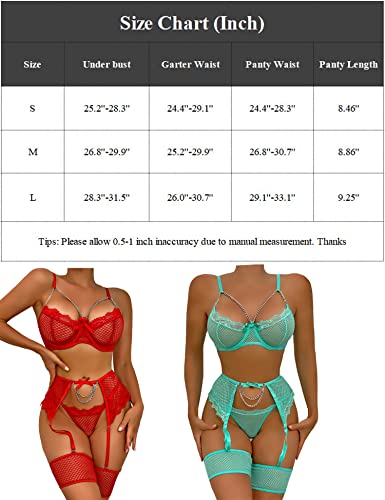 - ❀ Material: weiche Wimpernspitze, durchsichtiges Netzgewebe, Schleife und Punkkette. Das sexy 4-teilige Dessous-Set für Frauen ist hautfreundlich, atmungsaktiv, bequem zu tragen und perfekt, um charmante Kurven zu zeigen.