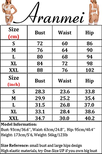 Aranmei Damen Dessous Set Reizwäsche Spitzen Sexy 3tlg Babydoll Push Up BH ,Panty ,Strumpfhalter