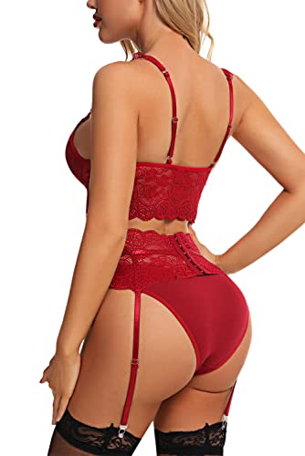 Das Aranmei Sexy Dessous-Set für Damen in Weinrot ist das perfekte Outfit für besondere Anlässe wie die Hochzeitsnacht, Flitterwochen oder den Valentinstag. Das Set besteht aus einem Spitzen-BH mit verstellbaren Trägern und Wimpernspitzenbesatz, der für eine perfekte Passform sorgt und elegant aussieht. Der drahtlose BH kann den ganzen Tag über bequem getragen werden und kann auch als sexy Spitzen-Camisole Bralette Crop Top verwendet werden. Der Strumpfgürtel des Sets verfügt über 4 Strumpfhalter mit Metallclips