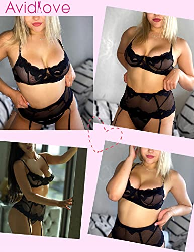 - Avidlove 3-TLG Dessous Set mit Strapse Sexy Reizwäsche Spitze Unterwäsche BH und Slip mit Strapsgürtel, bestehen aus BH(mit Bügel), String und Strumpfgürtel(OHNE Strümpfe!!!).