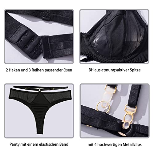 Das Kimlyf Strapsen Dessous Set für Damen ist ein verführerisches und sexy Unterwäsche-Set, das aus einem BH, einem Slip mit Spitze und Beinbändern besteht. Das BH-Band ist verstellbar, mit 2 Haken und 3 Reihen passender Ösen, um Ihnen die perfekte Passform zu ermöglichen. Hergestellt aus 95% Polyester und 5% Elasthan, bietet dieses Dessous-Set genügend Elastizität und ein angenehmes Tastgefühl. Die Strapsen an dem Slip verleihen dem Set einen zusätzlichen Hauch von Erotik.