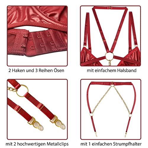 【abnehmbarer Choker】- Sie können wählen, ob Sie das Choker mit der sexy Unterwäsche für Frau tragen oder nicht. Der BH und das Choker sind nicht zusammengenäht, sondern getrennt. Viele Leute tragen es gerne, weil es sowohl die Brustform als auch die Linien der Schultern und des Nackens schmücken kann. Verschluss: Haken und Öse 95% Polyester und 5% Elastan Unterwäsche Pflegehinweis: Nur Handwäsche Modellnummer: Dessous-set 5 tlg.
